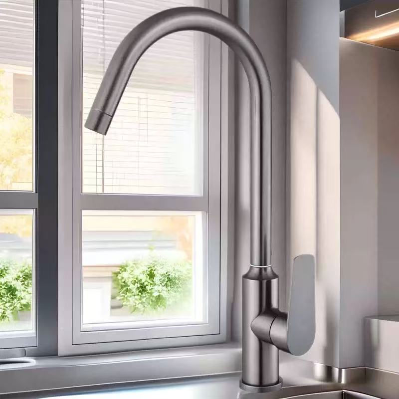 Feita em material de alta qualidade, o aço inoxidável, e na cor escovada, essa torneira possui um modelo comum de alça única e função de água fria única.